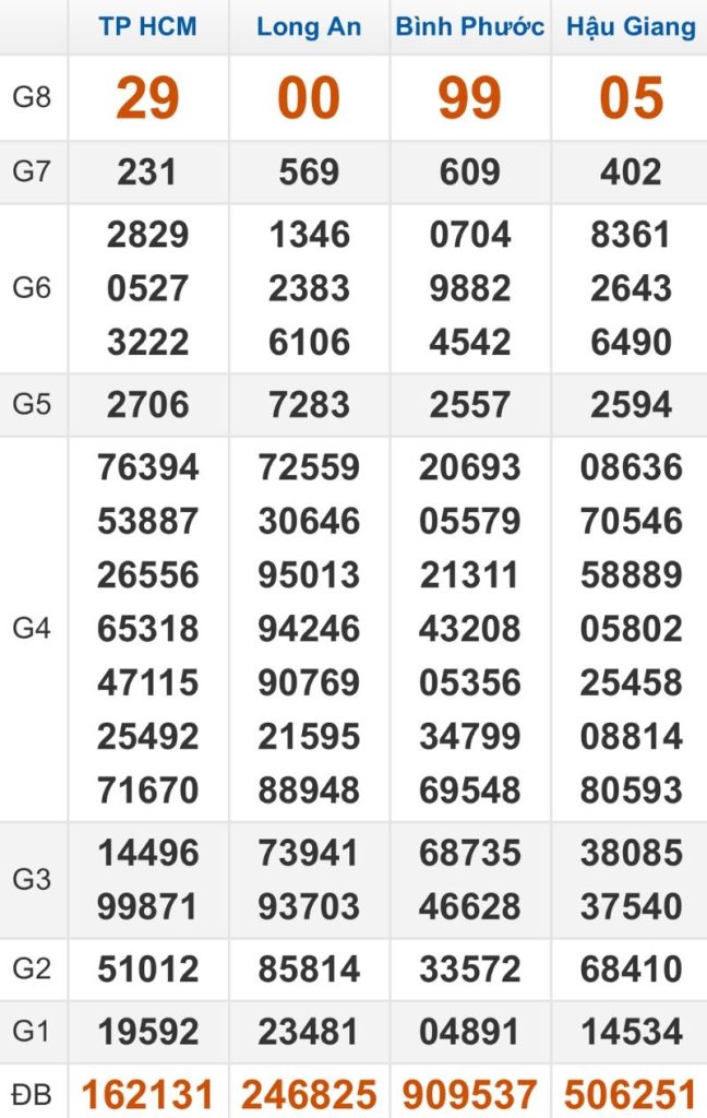 Chúng tôi cập nhật giải 8 kỳ trước XS Hồ Chí Minh về con 34 nên đánh số 09 – 45 – 03 – 25. Đề về 55 nên chúng tôi khuyên bạn chốt số 00 – 10 – 03 – 35 bạn nhé.
