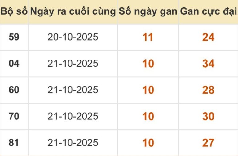 Thống kê lô gan XSMB 01/11/2025 cung cấp cho bạn nhiều con lô chuẩn, đón xem và đặt cược cùng chúng tôi nhé: