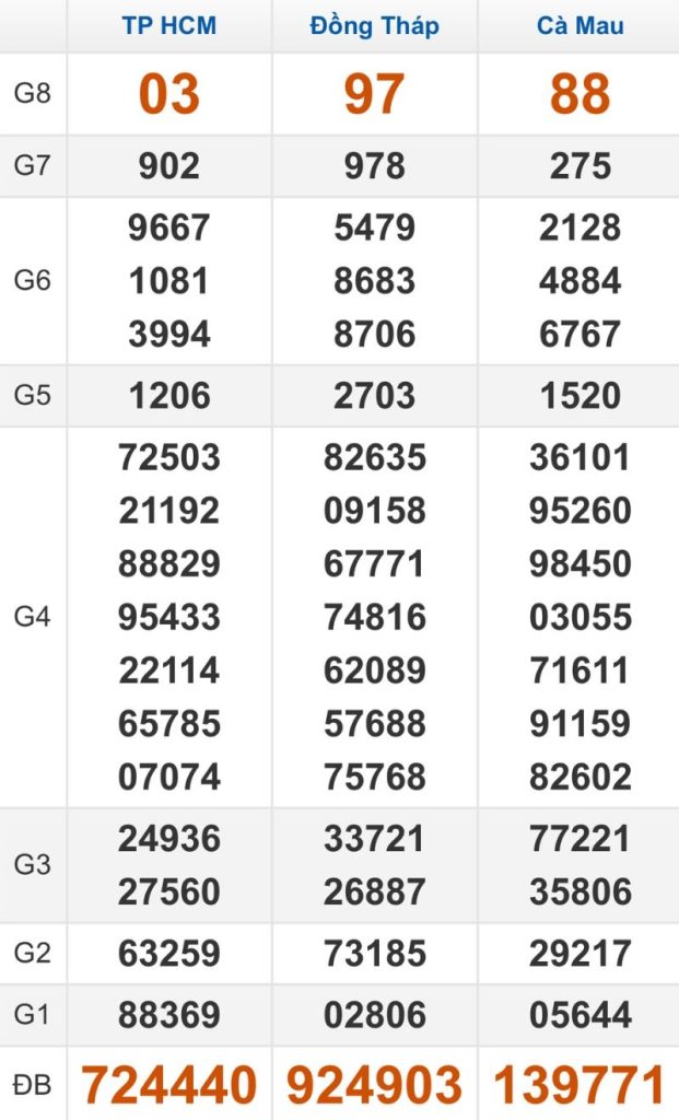 Xem lại kết quả TP Hồ Chí Minh có giải 8 về con 62 nên hãy chốt số 08 – 80 – 09 – 44. Đề về 18 là dấu hiệu con số 85 – 95 – 03 – 04 sẽ về nên lưu ý nhé.