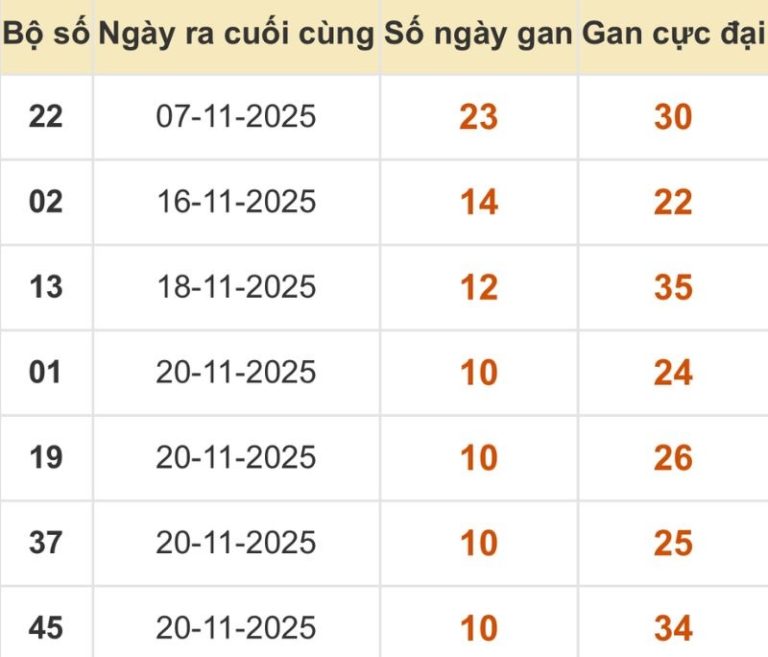 Thống kê lô gan XSMB 01/12/2025 cập nhật các thông tin mới nhất, mời bạn cùng chúng tôi nghiên cứu nhé: