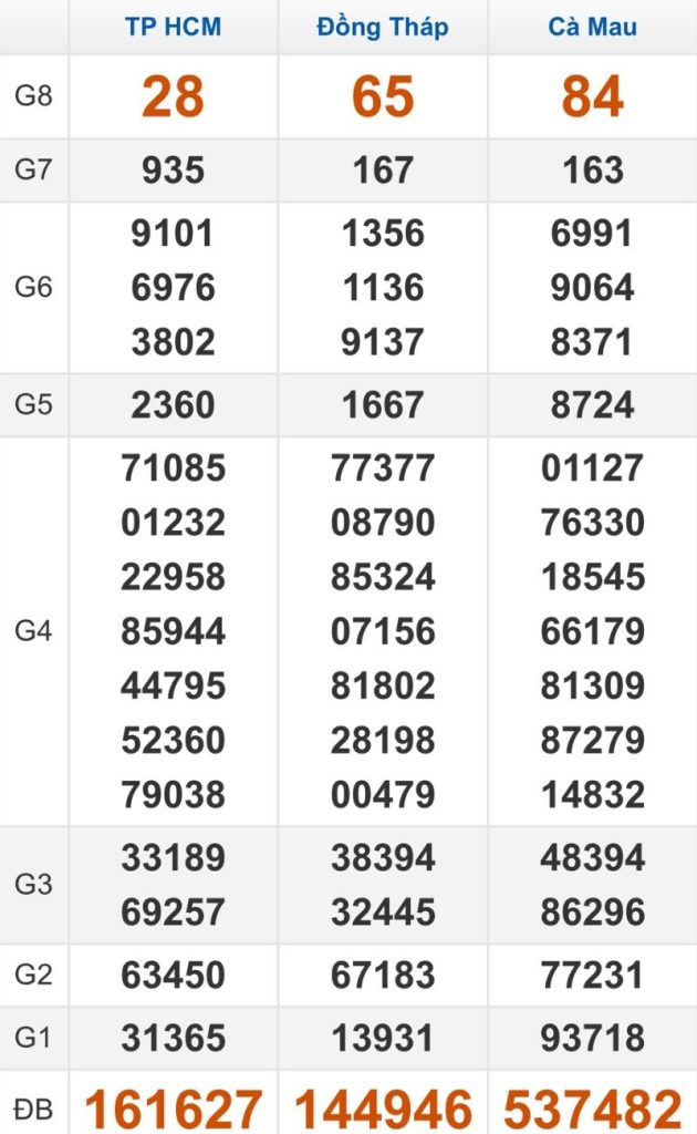 Chốt số chi tiết xổ số TP Hồ Chí Minh 03/11