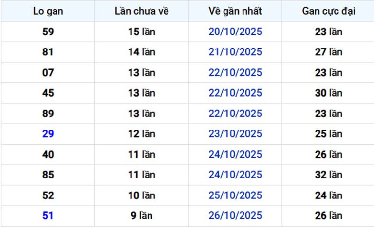 Thống kê lô gan của XSMB 06/11/2025 mang lại thêm các gợi ý ấn tượng cho người chơi trong hôm nay. Cụ thể: