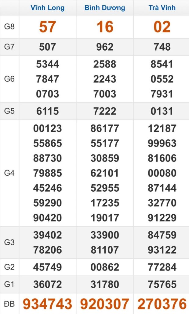 Kỳ trước Bình Dương xuất hiện giải 8 con 64 nên đánh con 09 – 50 – 26 – 01. Đề về 65 hãy chốt số 10 – 02 – 49 – 94 nhé.