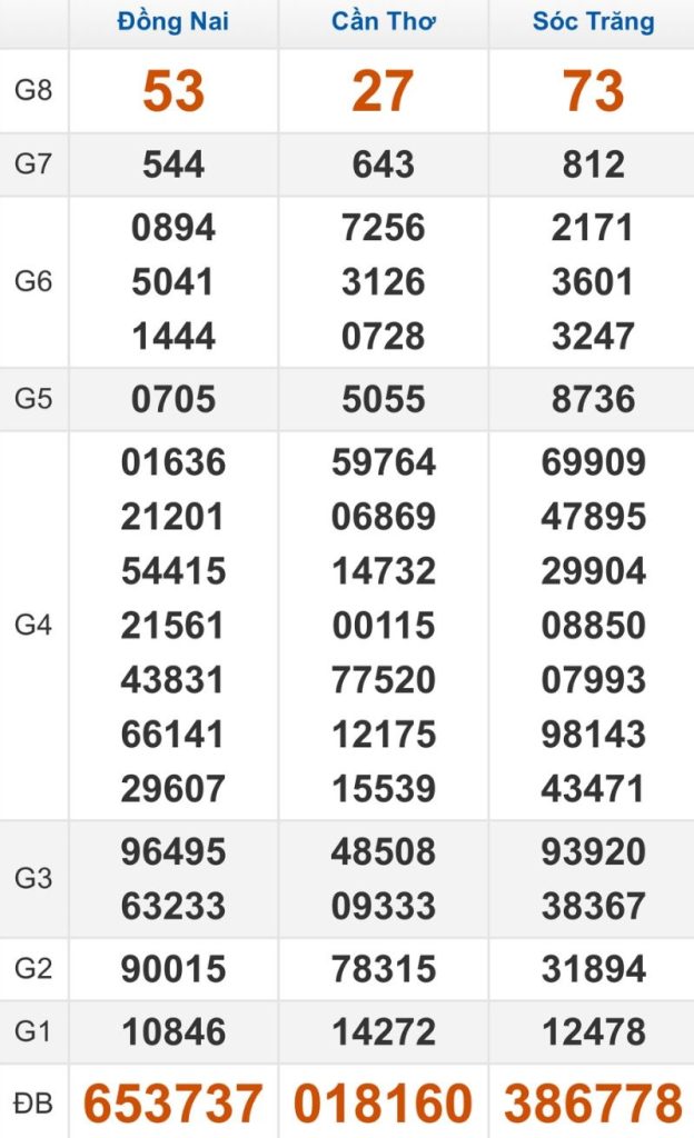 Chốt số chi tiết xổ số Cần Thơ 12/11