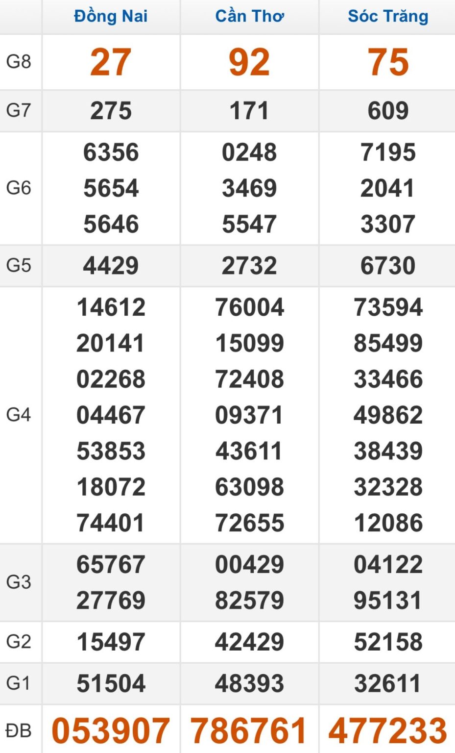 Tuần trước giải 8 của Cần Thơ là con 92 là dấu hiệu các số 10 – 01 – 94 – 38 sẽ về. Đề về 61 nên chốt con lô 70 – 07 – 89 – 98 nhé.
