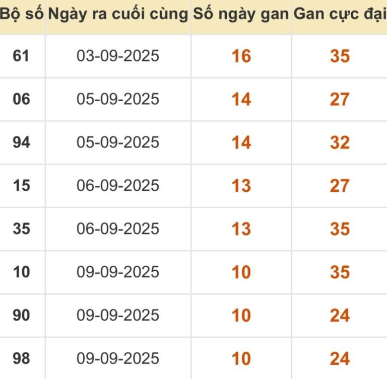 Thống kê lô gan XSMB 20/09/2025 với nhiều con lô đẹp hứa hẹn đem lại vận may lớn cho bạn: