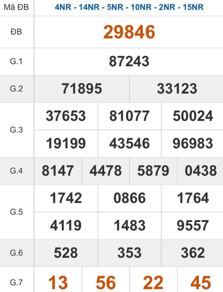 - Đầu – đuôi giải đặc biệt: 4 – 1