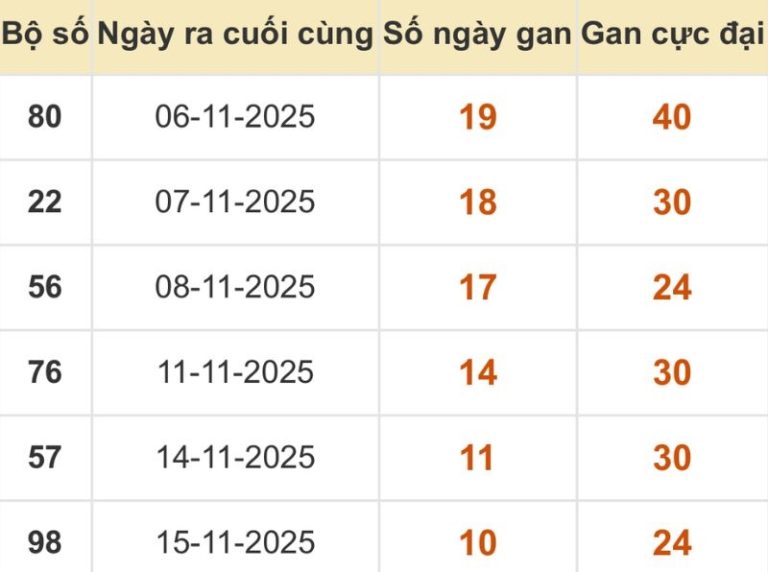 Thống kê lô gan XSMB 26/11/2025 giúp bạn có thêm các gợi ý loto mới để đặt cược trong kỳ quay thưởng này: