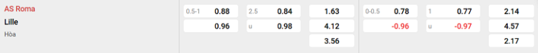 Bảng tỉ lệ kèo AS Roma vs Lille: