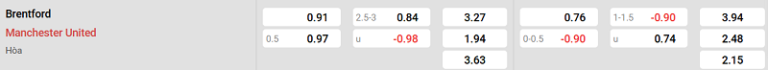 Bảng tỷ lệ kèo Brentford vs Man United:
