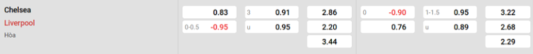 Bảng tỷ lệ kèo Chelsea vs Liverpool: