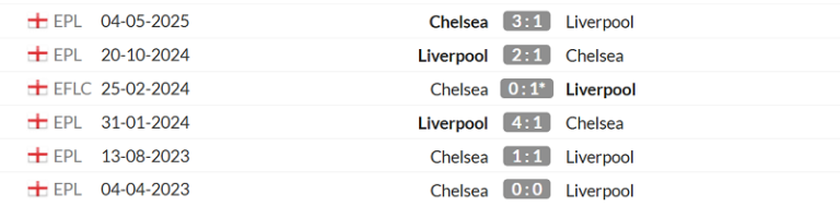 Thống kê lịch sử đối đầu giữa Chelsea vs Liverpool