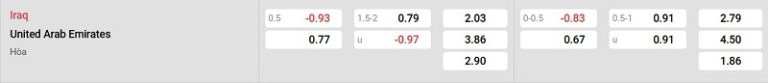 Bảng tỷ lệ kèo Iraq vs UAE: