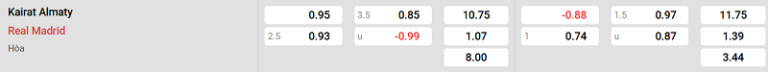 Bảng tỉ lệ kèo Kairat Almaty vs Real Madrid:
