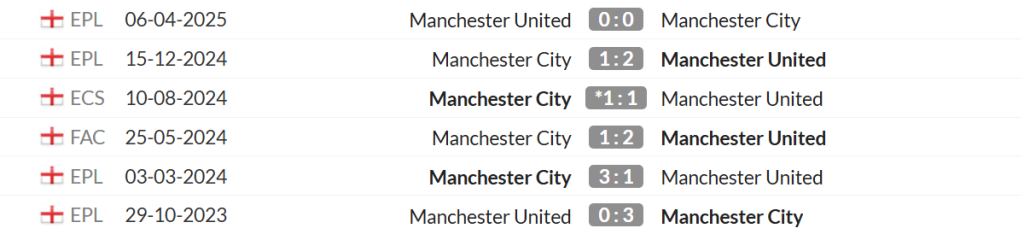 Lịch sử đối đầu đang nghiêng về phía Man City. Trong 6 lần chạm trán gần nhất với Man United, họ giành 3 chiến thắng, hòa 2 và chỉ thua 1 trận.