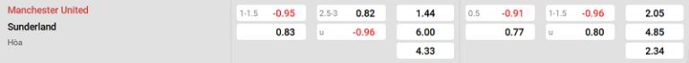 Bảng tỷ lệ kèo Man United vs Sunderland:
