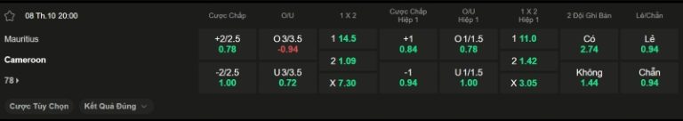 Bảng tỷ lệ kèo Mauritius vs Cameroon: