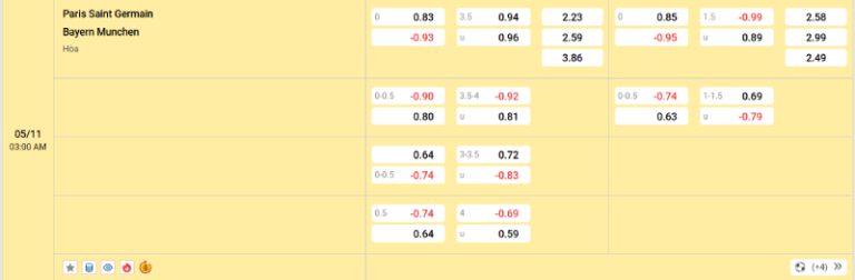 Bảng tỷ lệ kèo PSG vs Bayern Munich: