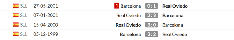 Thống kê lịch sử đối đầu giữa Real Oviedo vs Barcelona
