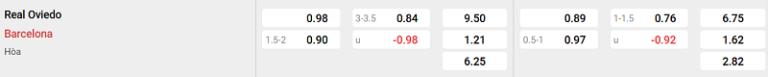Bảng tỉ lệ kèo Real Oviedo vs Barcelona: