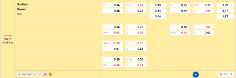 Bảng tỷ lệ kèo Scotland vs Hy Lạp: